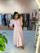 The Smocked Bodice Dress is your easy one-and-done piece—designed to flatter with its stretchy, body-skimming fit up top and a breezy, lightweight skirt that moves with you. The midi length keeps it versatile, while the adjustable waist tie lets you cinch it just how you like. Finished in a soft blend of 85% rayon, 15% linen, it’s equal parts effortless and elevated.