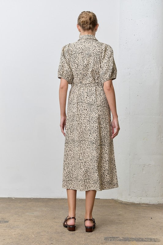 Turn heads with the Jagger Dress. This collared button-down leopard midi hits the sweet spot between daring and effortless, with a waist tie for the perfect fit and elastic cuffs for easy wear. Wear it with sneakers for day or heels for night—Jagger is made to stand out.