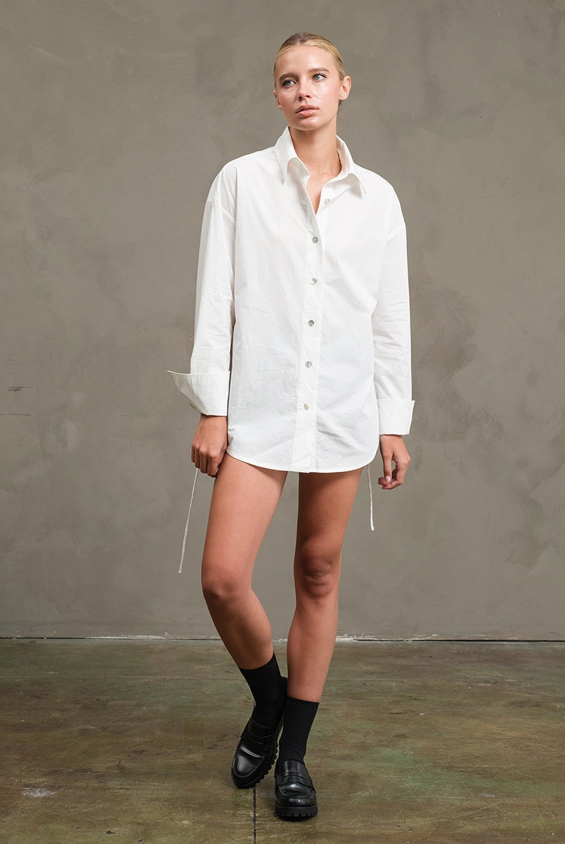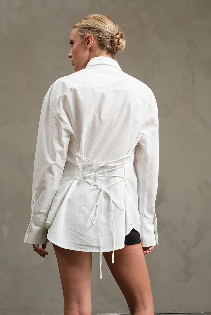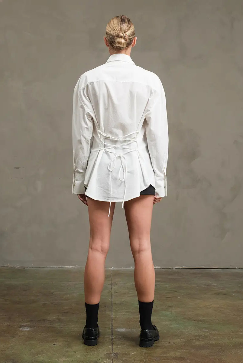 Tie-back design with softly cinched waist