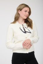 Polish meets playfulness. The Sutton Cardigan features luxe gold buttons and a chic black-and-white tie-neck detail, crafted in a soft knit for comfort and style. Layer it over skirts, dresses, or your favorite Jupe-ready separates for effortless, elevated looks.