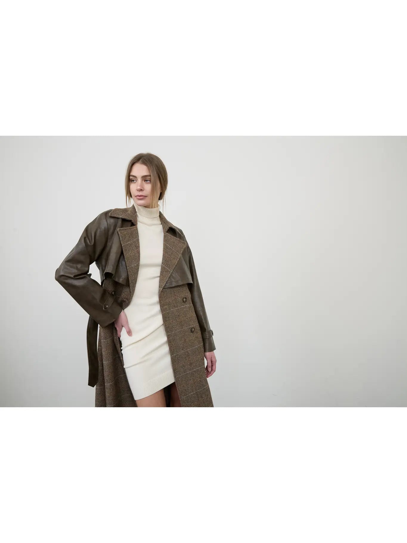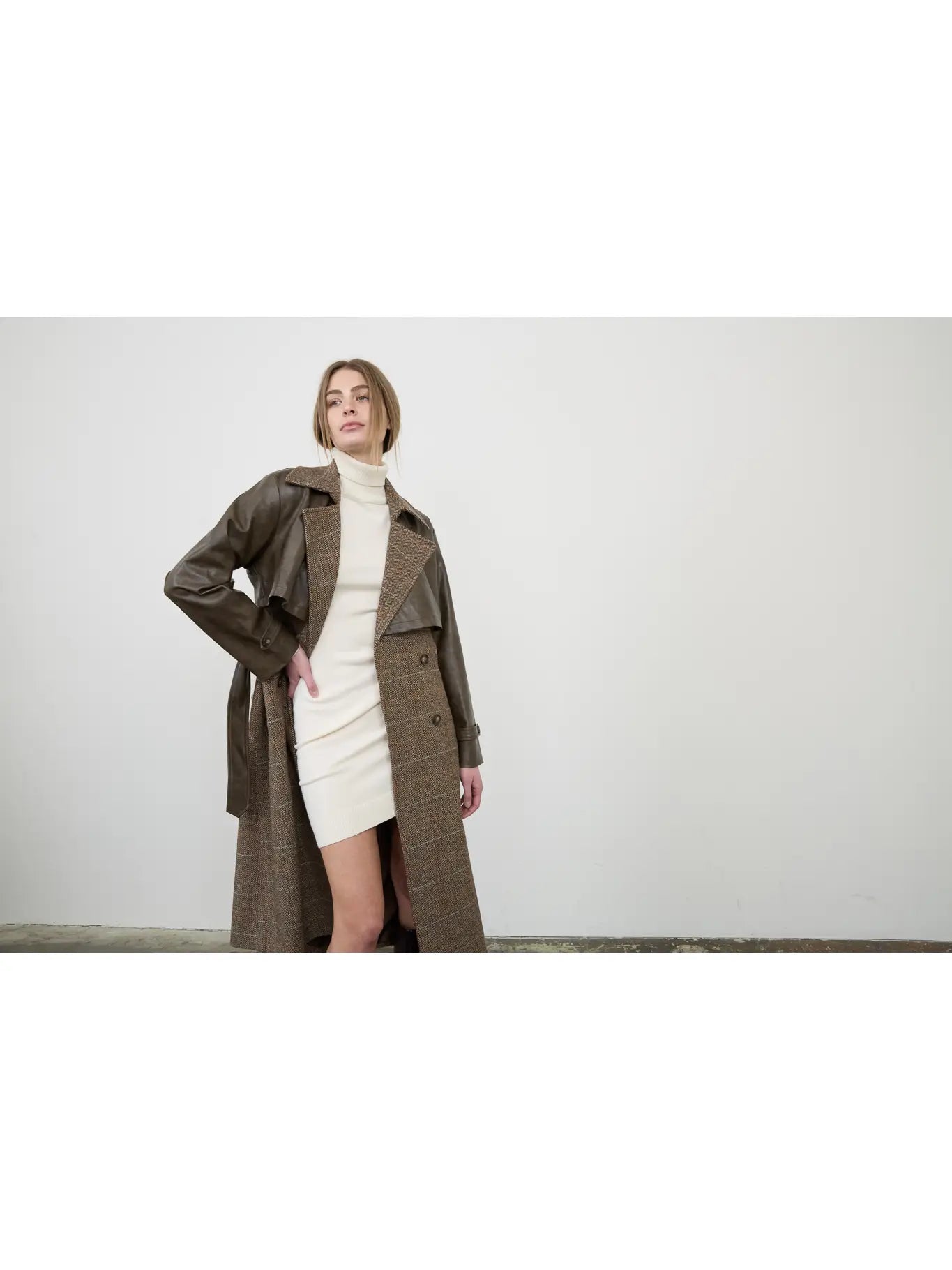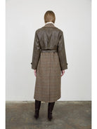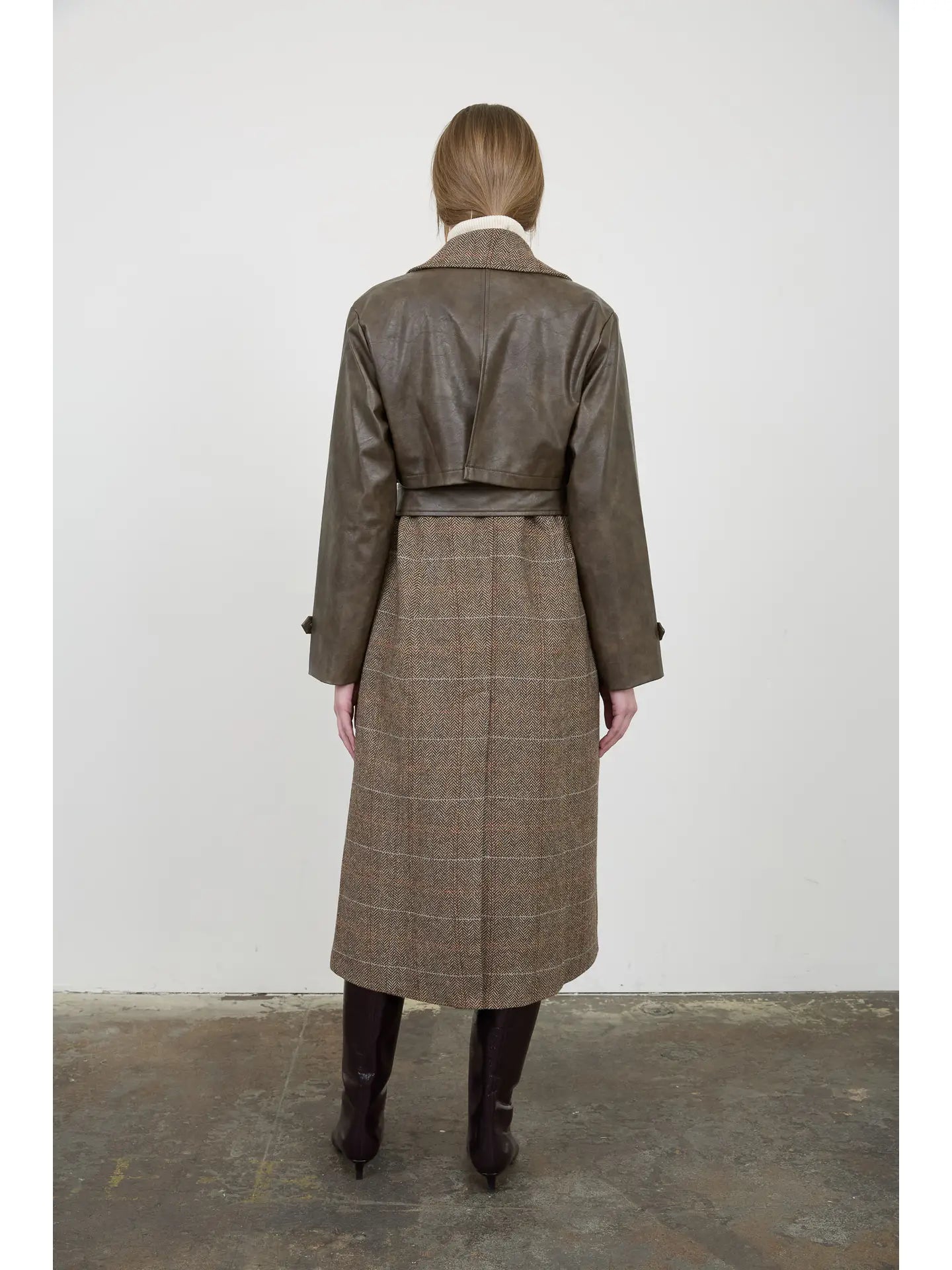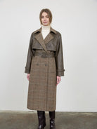 Timeless by design, bold by detail. The Heritage Trench Coat reimagines a classic silhouette in oversized plaid with faux leather trim for a modern edge. Cut from a luxe wool blend, it features a notch collar, belted waist, and cuff tab sleeves for that perfectly tailored finish. Fully lined and maxi length, it’s the kind of outerwear that makes every look feel iconic.