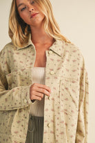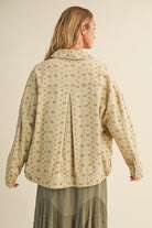 A soft nod to vintage charm. The Willowfield Jacket combines an easy, relaxed silhouette with delicate all-over florals and a pleated back detail for subtle movement. Crafted from 100% cotton, it’s lightweight yet structured — the kind of piece that elevates everything from your favorite dress to a simple tank and denim combo.