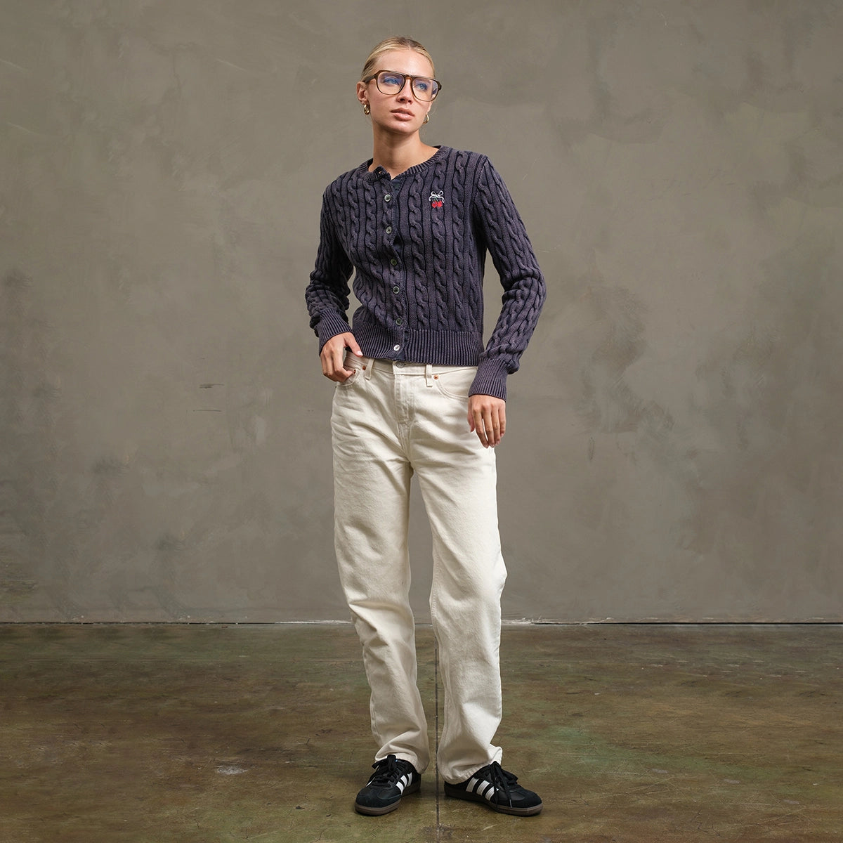 A classic cable knit with a little wink. The Cherry Cable Cardigan blends timeless texture with a playful embroidered cherry motif, giving your everyday layers a sweet twist. Crafted from 100% cotton, it’s soft, breathable, and polished — the perfect throw-on for chilly mornings, cool evenings, or those in-between days when you want something cozy but still cute. Finished with thoughtful details that feel subtly elevated, it’s that piece you reach for on repeat.