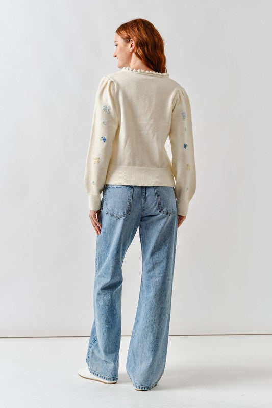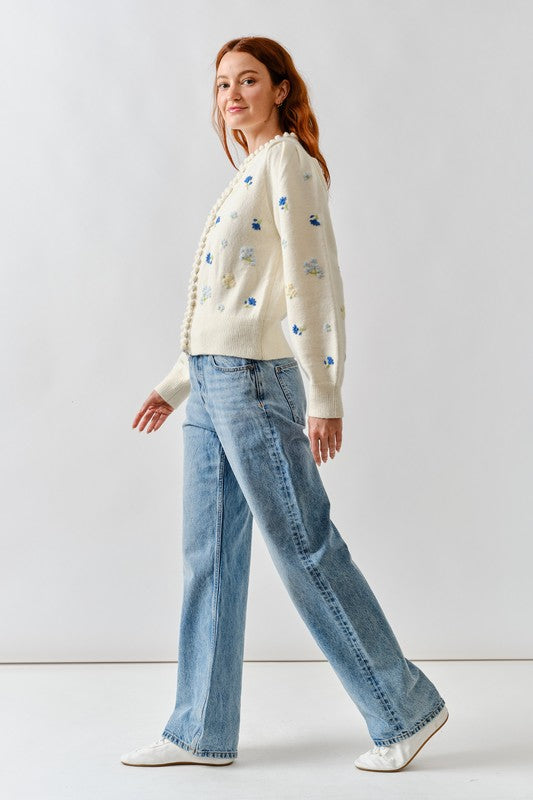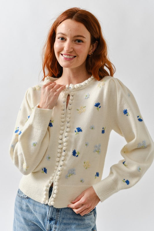 Romantic and playful, The Garden Knit Sweater brings a touch of vintage charm to your everyday look. Featuring delicate floral embroidery and whimsical pom-pom detailing, this soft knit blends sweetness and sophistication. Designed with a relaxed fit and hook-and-eye front, it’s an effortless layer for dressing up denim or adding a feminine touch to your favorite skirt.