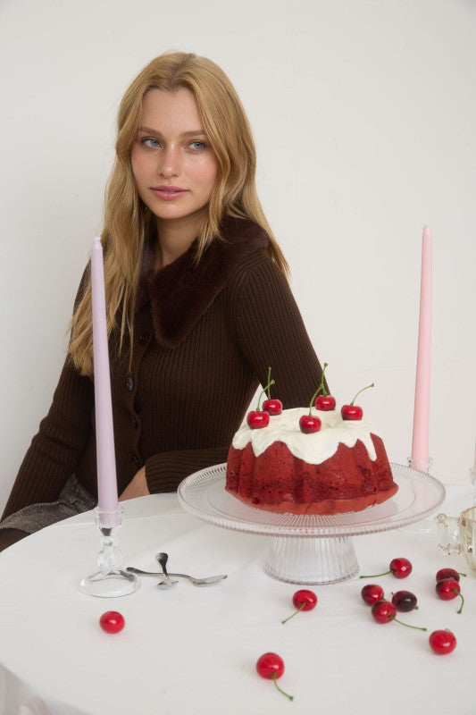 Vintage charm meets modern polish — The Vienna Cardigan is a cozy, fitted knit elevated by a plush faux fur collar. Designed with a ribbed texture and button-down front, it blends warmth with sophistication. Perfect for pairing with pleated skirts or sleek midi styles, it’s that effortless mix of soft and statement.