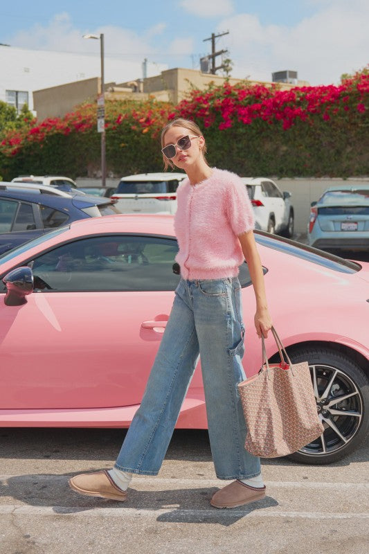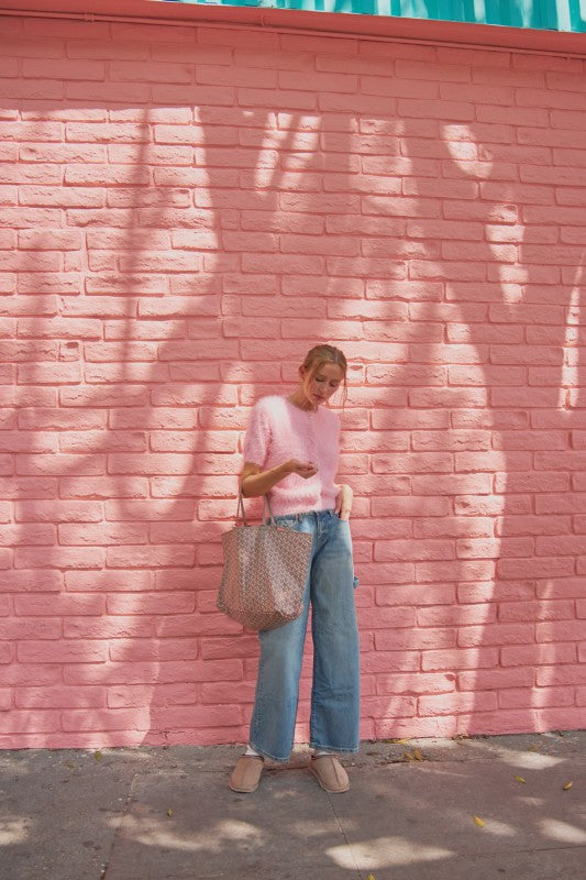 Cozy, chic, and effortlessly stylish — The Kelly Sweater combines the luxe texture of mohair with playful, feminine details. Featuring a short-sleeve silhouette, soft puff sleeves, and a pearl-button placket, it’s perfect layered over skirts or paired with high-waisted coordinating pieces. Its relaxed, waist-length fit makes it flattering and easy to style.