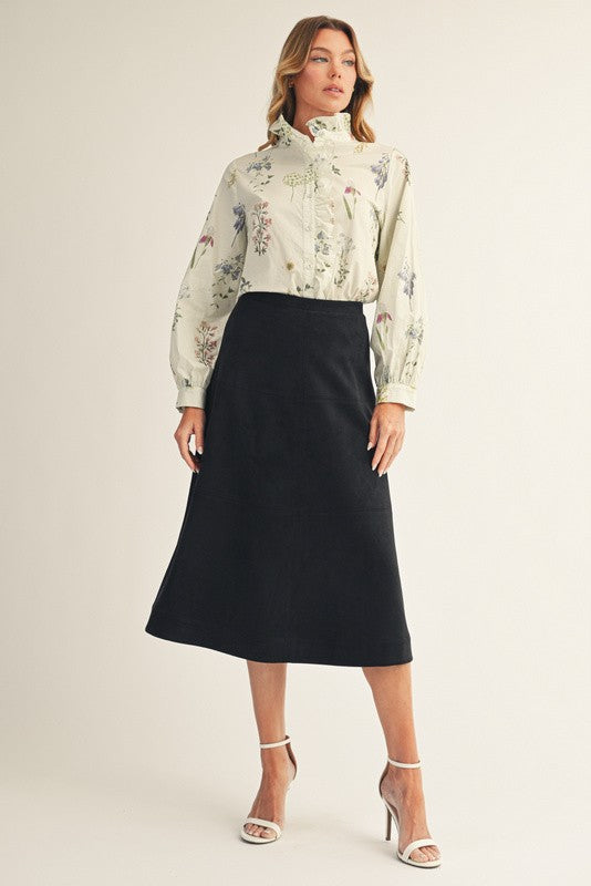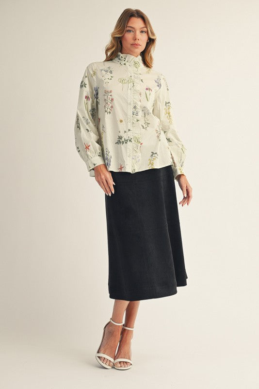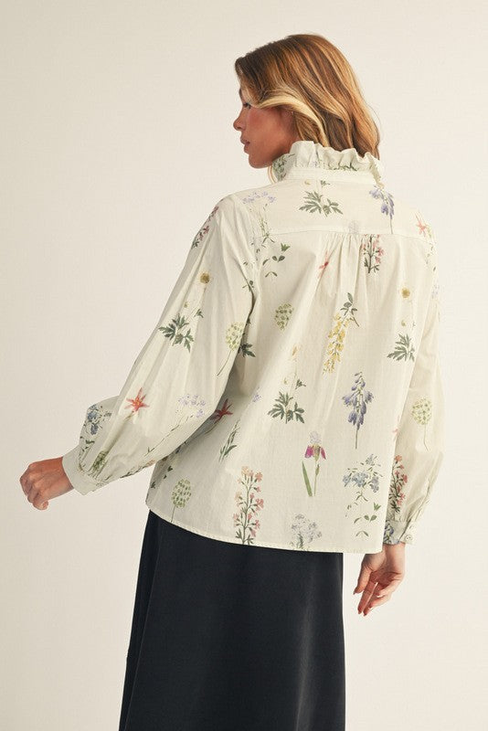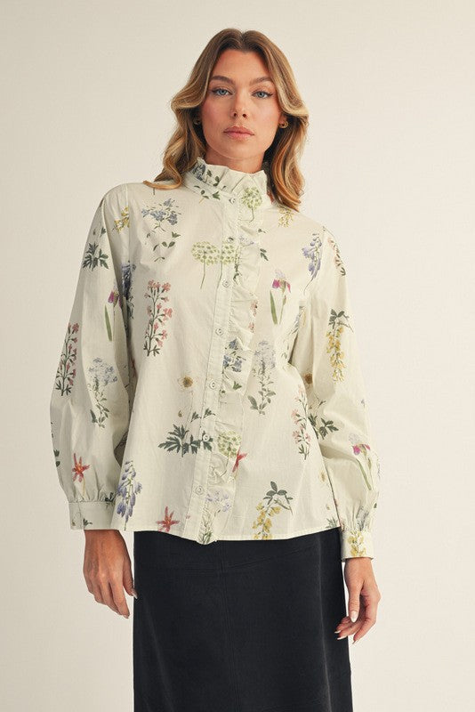 Romantic yet refined, The Avery Top brings soft structure to your wardrobe. Designed in crisp cotton with an allover floral print, it features a button-down front, long sleeves, and a high neckline finished with delicate ruffles. A versatile piece that pairs effortlessly with denim or skirts for an easy day-to-night look.