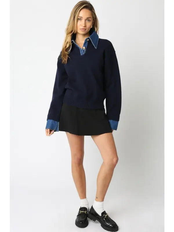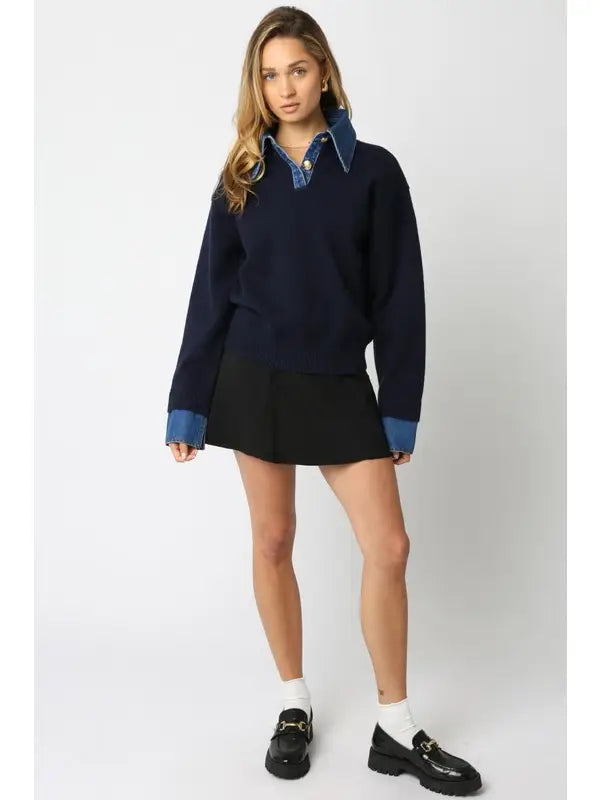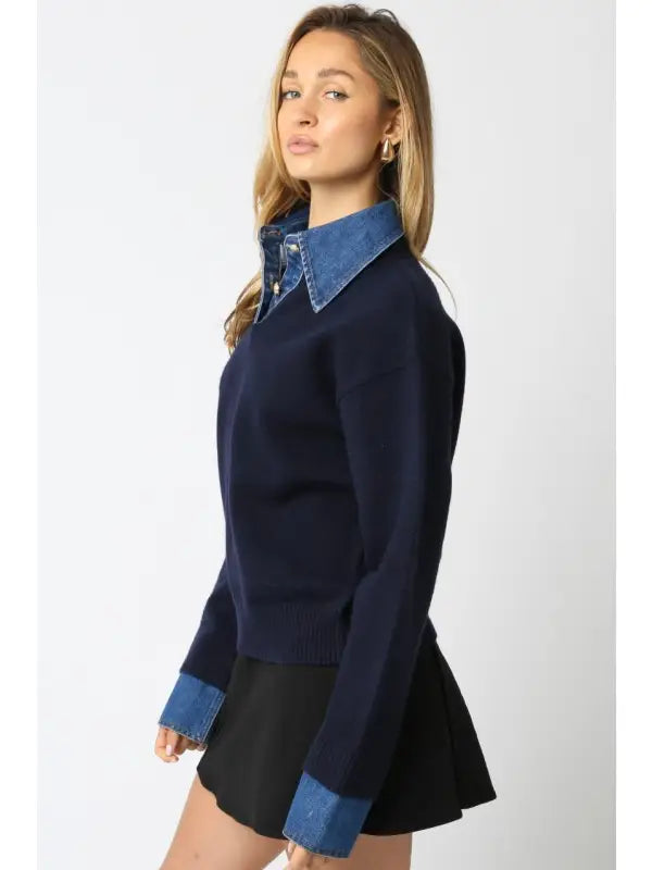 Meet the all-in-one top that gives effortless layering without the fuss. The Camden Denim Knit Top combines a soft, textured knit with denim-wash collar and cuff details for that cool, pre-styled look you love. Finished with gold buttons for a hint of shine, it’s the perfect balance of polished and relaxed — ideal for days when you want to look put-together in seconds.