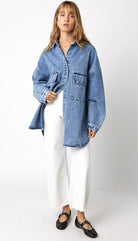 The Finley Oversized Denim Shirt – your go-to layer for laid-back polish.