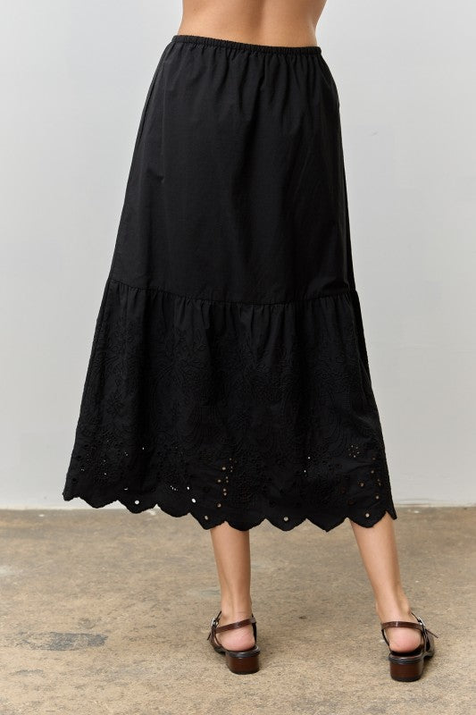 Airy, effortless, and undeniably feminine — The Isla Skirt is a cotton eyelet dream. Designed with a tiered silhouette and scalloped embroidered hem, it brings soft texture and movement to any look. Finished with an elastic waistband and side pockets for everyday comfort, Isla is that rare piece that feels both polished and relaxed — perfect from day to night.